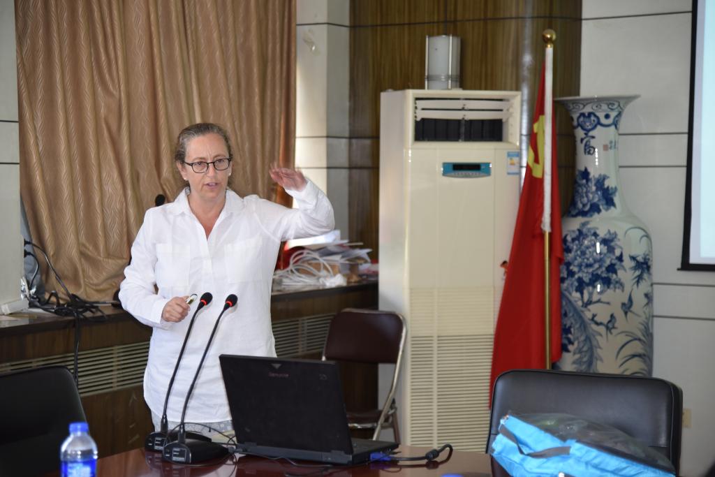 7月11日上午,美国加州州立理工大学波莫那分校数学与统计学院格雷西.温基.兰德曼(Greisy Winicki Landman)教授来我校为数理学院教师作了题为“高认知需求的数学任务”(Mathematical tasks of high cognitive demand)的精彩讲座。讲座在主楼四楼会议室举行,数理学院副院长曹南斌主持,数理学院院长段生贵、国际教育交流中心主任廖亦斌出席了讲座。