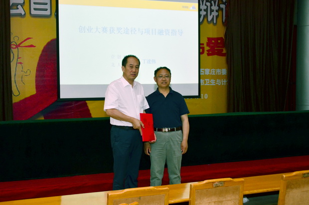 5月15日,壹创投(北京)投资管理有限公司董事长、北人壹创基金创始CEO、中国创新创业大赛国赛评委、互联网+大赛国赛评委丁浤伟先生来校,在学术报告厅为我校学生作了题为“创业大赛获奖途径与创业项目融资”的学术报告。副校长南振兴出席并为丁浤伟先生颁发了我校MBA导师聘书和创业导师聘书,他希望丁浤伟先生能在创新创业大赛方面给予我校师生更多的指导意见。全校200余名师生聆听了报告。商学院副院长、MBA教育中心主任王汉新主持报告会。