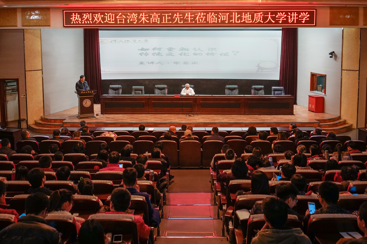 朱高正教授首先从个人自我成长的三个面向:过去、现在、未来说起,强调“每个人都有自己独特的过去,并且这样的过去是难以与人共享的,唯有将它内化为自己独有的东西,才能超越过去的自己”,继而引出“一个民族的过去就是这个民族的传统文化”,在怎样认识传统文化的问题上,他主张对传统文化要有敬畏之心,因为传统是一个民族的内在精神履历,只有从自己的传统中深刻认清自己的过去,才能改善自己、超越自己、成就自己。针对曾经有一段时期出现的国人盲目学习西方、盲目崇拜西方文化,而对中华文化的瑰宝——传统文化重视不够现象,朱先生列举了十七、十八世纪中国传统文化对于莱布尼兹、伍尔夫等近代西方思想巨匠的重大影响,讲述了中国优秀传统文化之于西方近代以来科学思维、思想启蒙的重要价值意义。他认为,中国文化历史悠久,独具特色,中华传统文明博大精深,每个中国人都应该学习和了解自己的民族文化,都应该有强烈的“文化自信”。