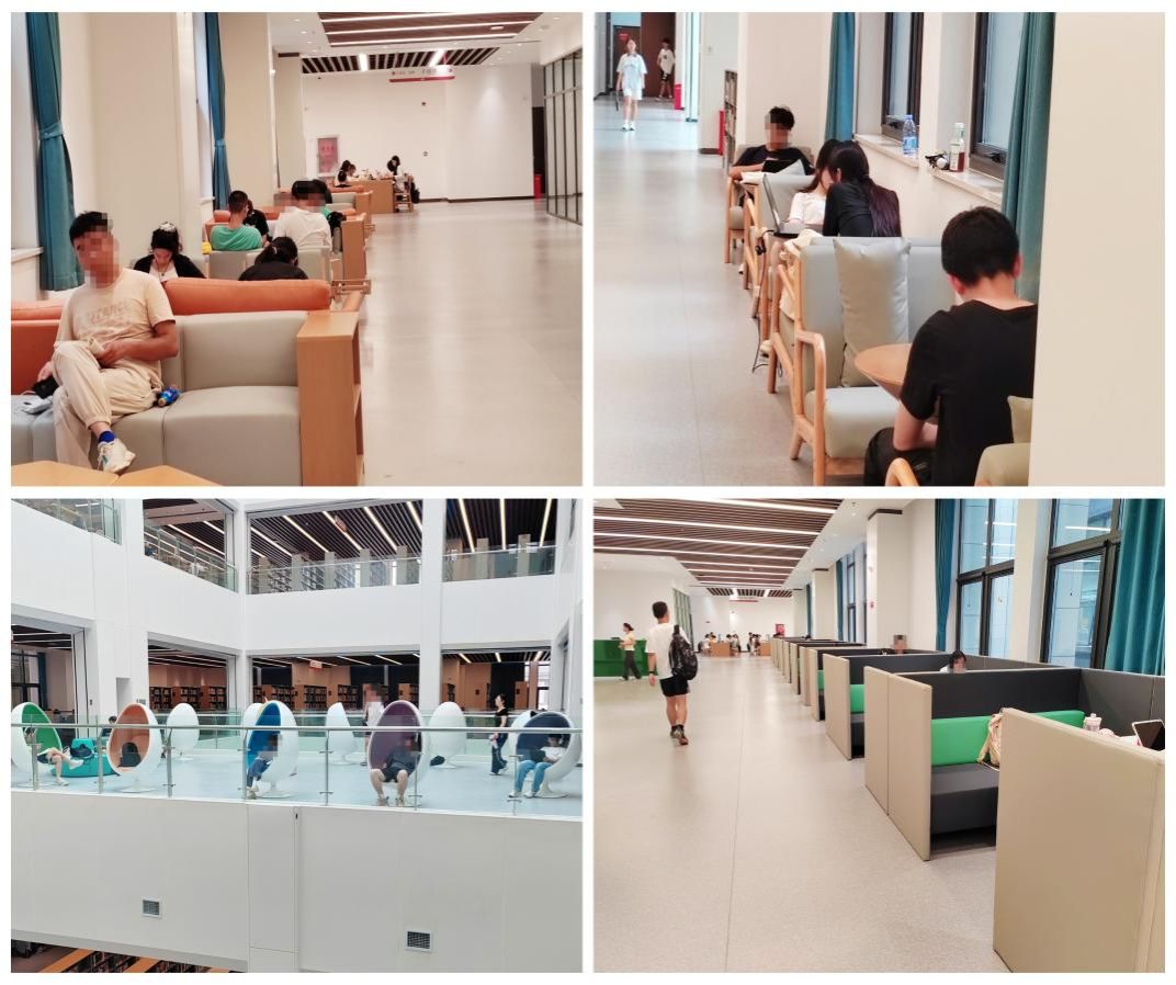 尽管人流如织,馆内始终跃动着文明的音符:读者如繁星般散落各处,却都保持着静谧的默契;基本没有违规使用电子设备的现象,接打电话大家都自觉到楼梯间;存包柜区域也彰显着默契与修养,离馆时自觉带走所存物品;闭馆音乐响起时,读者自觉将座椅归位,书桌阅览灯关闭,学习用品带离……同学们始终秉持着高度的自律意识,自觉且严格地遵守图书馆制定的各项规章制度,积极践行《读者公约》中的各项要求,以实际行动维护着图书馆良好的阅读秩序与学习环境。