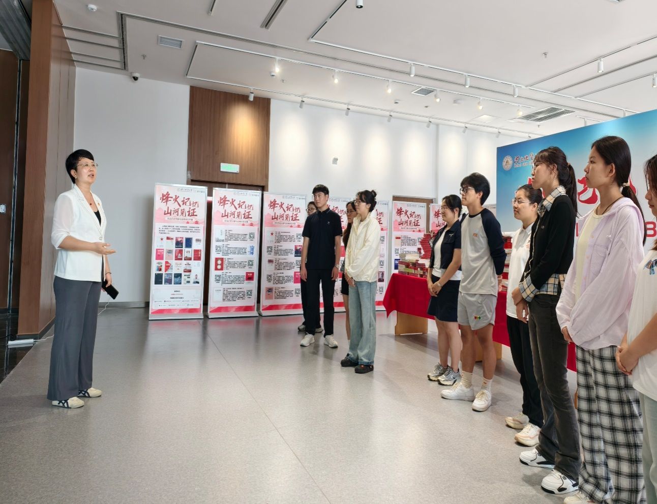 9月10日下午,图书馆精心策划并组织了一场有意义的研学活动,引领同学们走进图书馆的“院士书屋”,并参观以“烽火记忆,山河见证”为主题的纪念抗日战争胜利80周年主题书展。此次活动如同一把钥匙,为同学们打开了探寻图书馆知识宝藏与精神力量的大门。