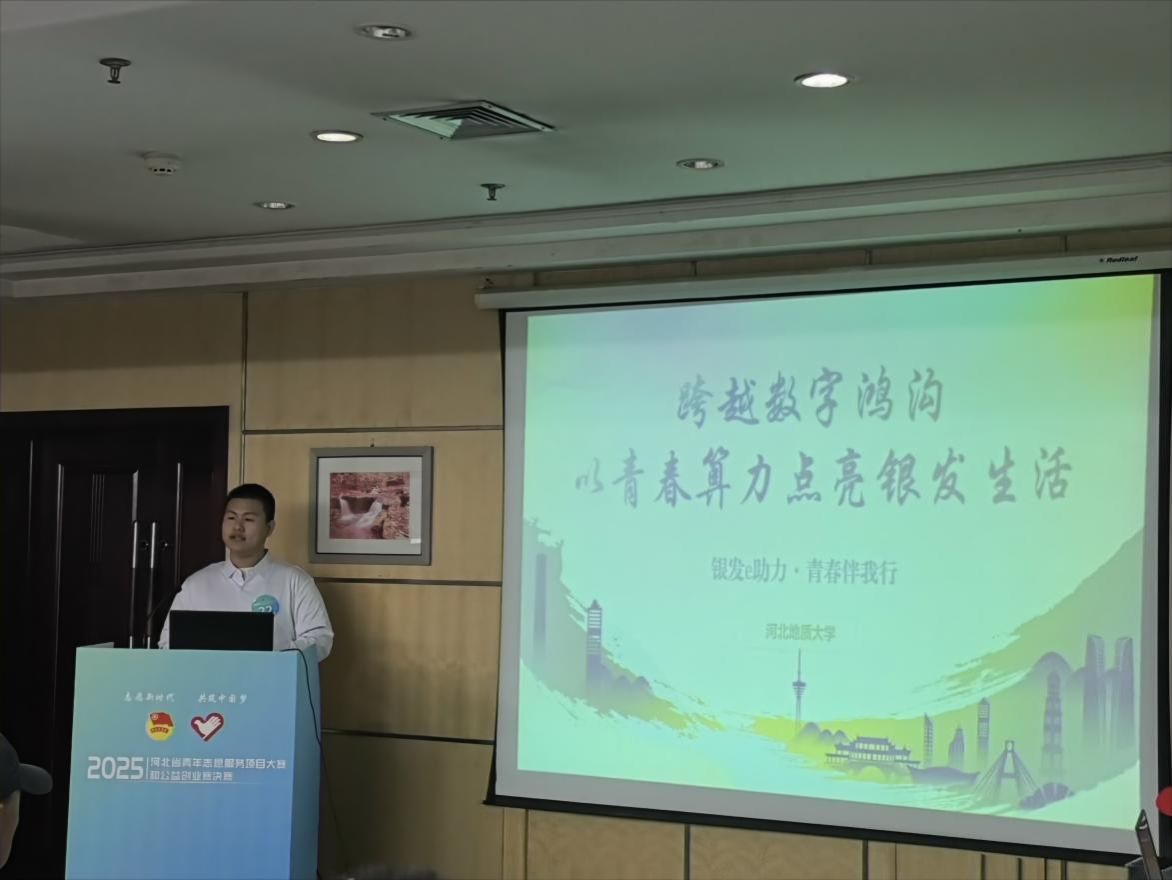 近日,由共青团河北省委、河北省委社会工作部、河北省教育厅、河北省水利厅、河北省文化和旅游厅、河北省卫生健康委、河北省残联共同主办,河北省青年志愿者中心、河北省青年志愿者协会、共青团邯郸市委、共青团涉县县委共同承办的2025年河北省青年志愿服务项目大赛和公益创业赛决赛在邯郸涉县举办。我校信息工程学院申报的《银发e助力·青春伴我行——电脑义诊进社区》志愿服务项目,凭借扎实的服务基础、鲜明的专业特色和显著的社会效益,在435个参赛项目中脱颖而出,荣获大赛银奖!