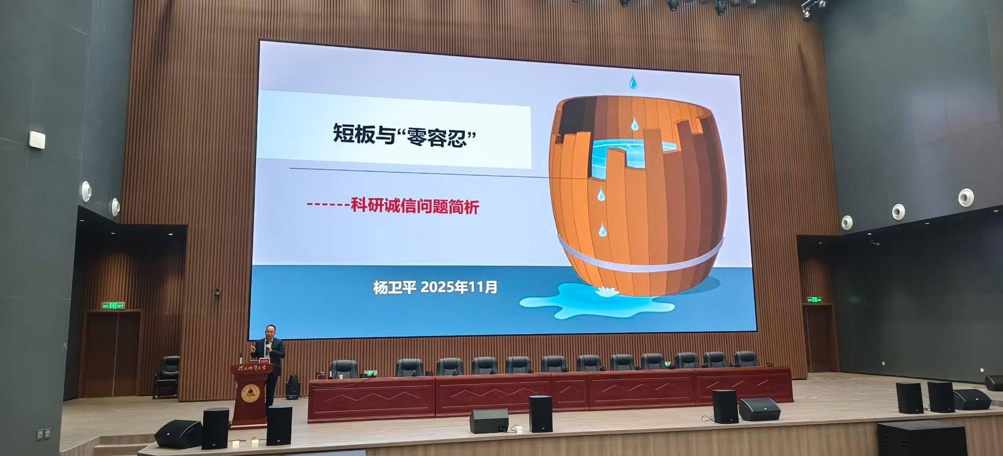 杨卫平结合大量国内外典型案例,系统剖析了当前科研实践中存在的诚信风险与制度短板,阐释了学术不端的各种典型行为和现象,告诫我们要敬畏学术规范、坚守科研底线、恪守诚信科研原则,并对治理科研诚信和学术不端行为的路径进行了专业解读。杨卫平的演讲内容丰富,信息量大,为在场师生带来了一场具有深刻警示意义的专题报告。此次宣讲教育活动内容详实、案例生动、警示作用突出,有效提升了我校研究生导师和全体研究生对科研规范与学术道德的深刻认识,为我校研究生培养工作的高质量发展奠定了坚实的基础。