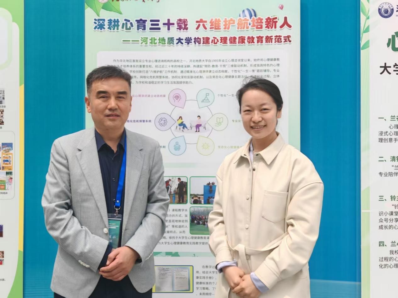 本次活动中,河北省教育厅遴选了28所心理健康工作具有突出特色和亮点的大中小学校在启动仪式当天进行现场展示,我校成功入围展览。田飞向教育部、河北省教育厅主要领导介绍了我校心理健康工作,学校始终将心理健康教育作为人才培养体系的重要支柱,创新打造“六维护航”工作机制,通过精准化心理测评建立动态档案,个性化“一生一策”跟踪辅导,专业化个体/团体咨询服务,网格化危机预警系统,协同化家校医联动机制及常态化心理健康主题活动,构建起全过程、立体化的心理支持网络;依托《大学生心理健康教育》公共必修课的课程建设,采用“实践+理论”教学相结合的方式,筹建了占地2500平方米的素质拓展基地,并将在2025年新生入学后投入使用。教育部和省教育厅领导对我校心理健康工作给予了充分肯定,并对今后的工作提出了更高期望,要求我校以第2个全国学生心理健康宣传教育月为契机,进一步做好学生心理健康教育和服务工作。