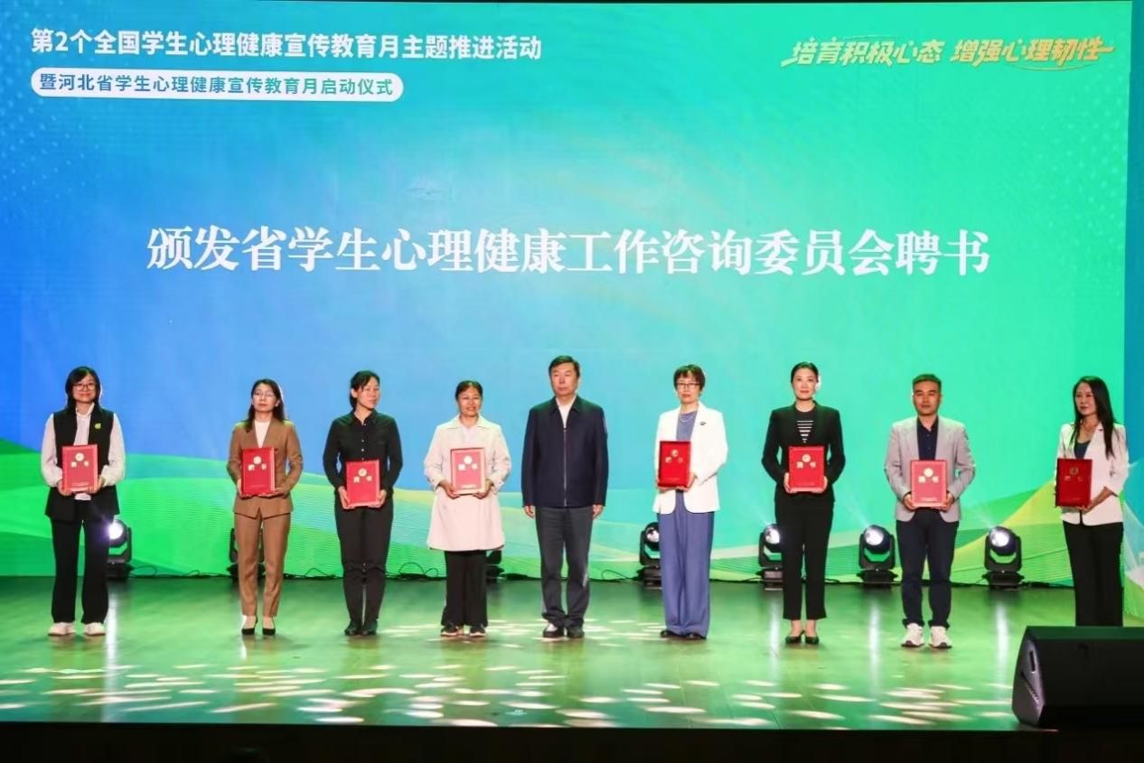 在本次活动中,我校学生工作处心理咨询中心主任田飞入选河北省学生心理健康工作咨询委员会委员,教育部体育卫生与艺术教育司副司长杨大研为其颁发聘书。