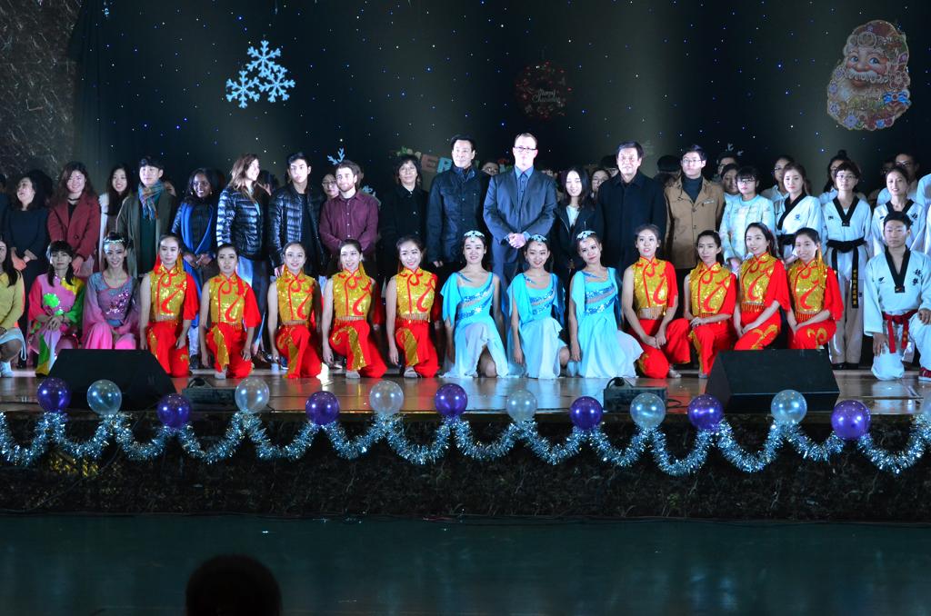 12月21日晚,我校中外师生迎新年联谊会在惠馨园五楼大厅隆重举办。联谊会由国际教育交流中心主办,校团委承办。校党委书记李军、党委副书记刘耀辉,副校长张小平,各相关单位负责人、中外师生代表300余人欢聚一堂,喜迎新年。