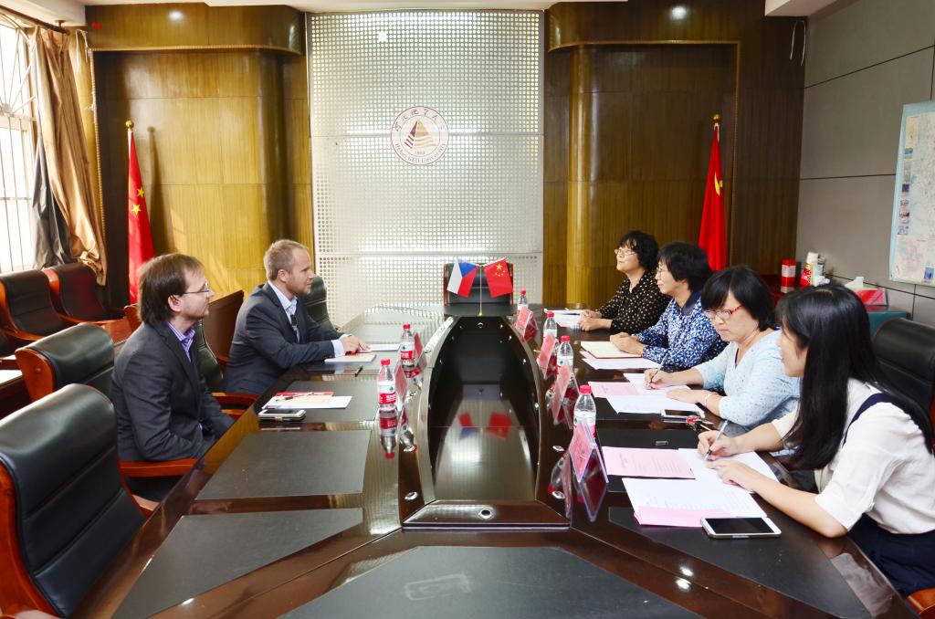 合作洽谈期间,张小平致欢迎词并介绍了我校60多年来的办学、发展历程,以及国际合作交流情况,表达了在中国“一带一路”的大环境下,非常愿意和捷克高校进行合作的愿望;Petr Kavalir教授随后介绍了西波西米亚大学的基本情况及此次访问我校的目的;双方就课程对接、学生互换、教师互访达成共识。