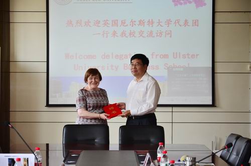 5月10日至11日,我校合作伙伴英国厄尔斯特大学商学院院长Marie McHugh女士率代表团一行5人对我校进行了友好访问。校长王凤鸣、副校长张小平与代表团成员座谈,双方就我校与英国厄尔斯特大学的金融学专业合作办学项目的运行事宜进行了磋商。