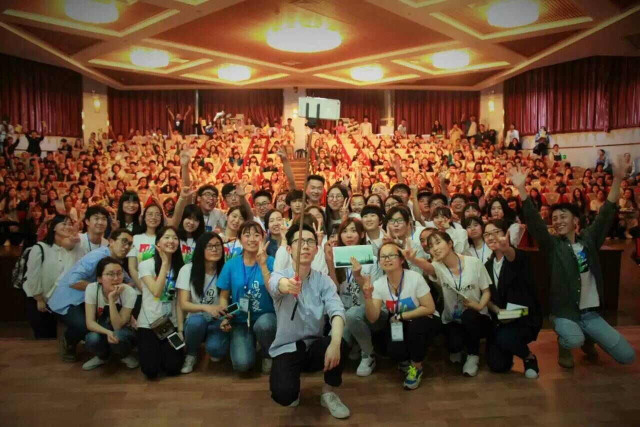 晚上7点15分,在Biggo Youth团队“达观讲堂”创始人王志达简单介绍过团队后,卢思浩“告别是为了更好的重逢”讲座正式开始。卢思浩出场的瞬间,会场内迅速爆发出雷鸣般的掌声。卢思浩手拿着自己的三本作品,三步并作两步地来到台上,跟大家分享自己的故事。