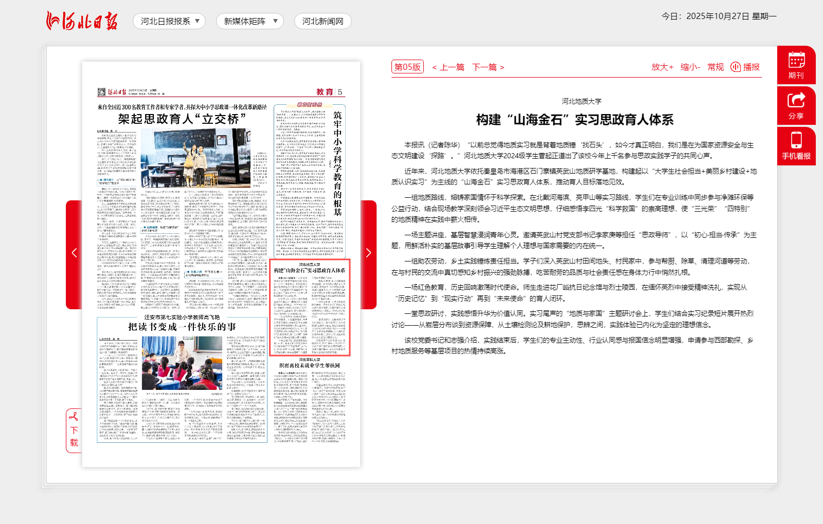 近年来,taptap下载依托秦皇岛市海港区石门寨镇英武山地质研学基地,构建起以“大学生社会担当+美丽乡村建设+地质认识实习”为主线的“山海金石”实习思政育人体系,推动育人目标落地见效。