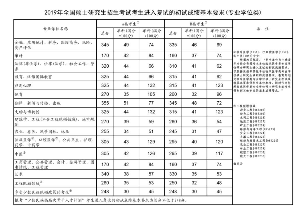 2019年全国硕士研究生招生考试考生进入复试的初试成绩基本要求