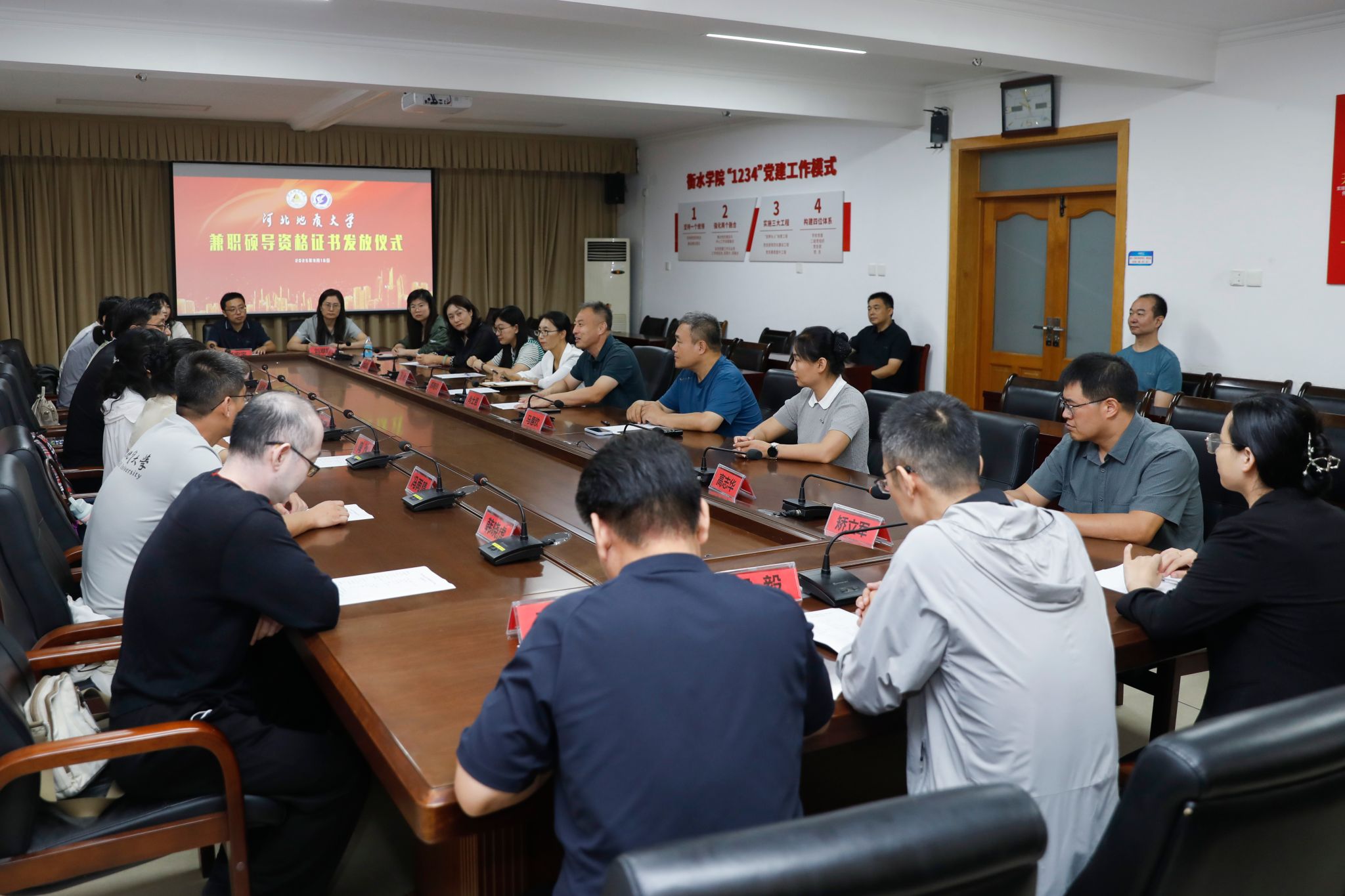 9月12日、16日,研究生学院、相关学院分别赴石家庄学院、衡水学院进行调研交流及招生宣传,并进行了兼职导师聘任。研究生学院院长曹南斌,副院长段亚敏、彭永芳参加了交流并为两校在我校的兼职硕士研究生导师颁发了兼职导师资格证书。在与两所学校的交流中曹南斌重点介绍了我校师资力量、导师队伍建设等情况,表示希望通过本次活动和双方的合作,吸引两校更多优秀生源报考我校。管理学院、经济学院、水资源与环境学院、宝石与材料学院、信息工程学院、法政学院、语言学院等学院教师代表与两所学校的对应学院分别进行交流并进行招生宣传活动。